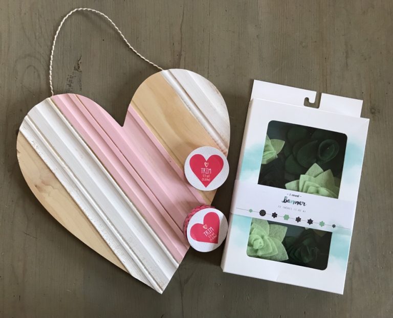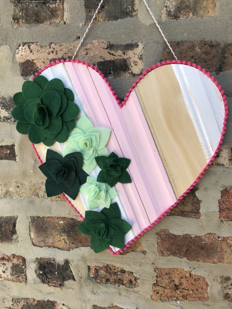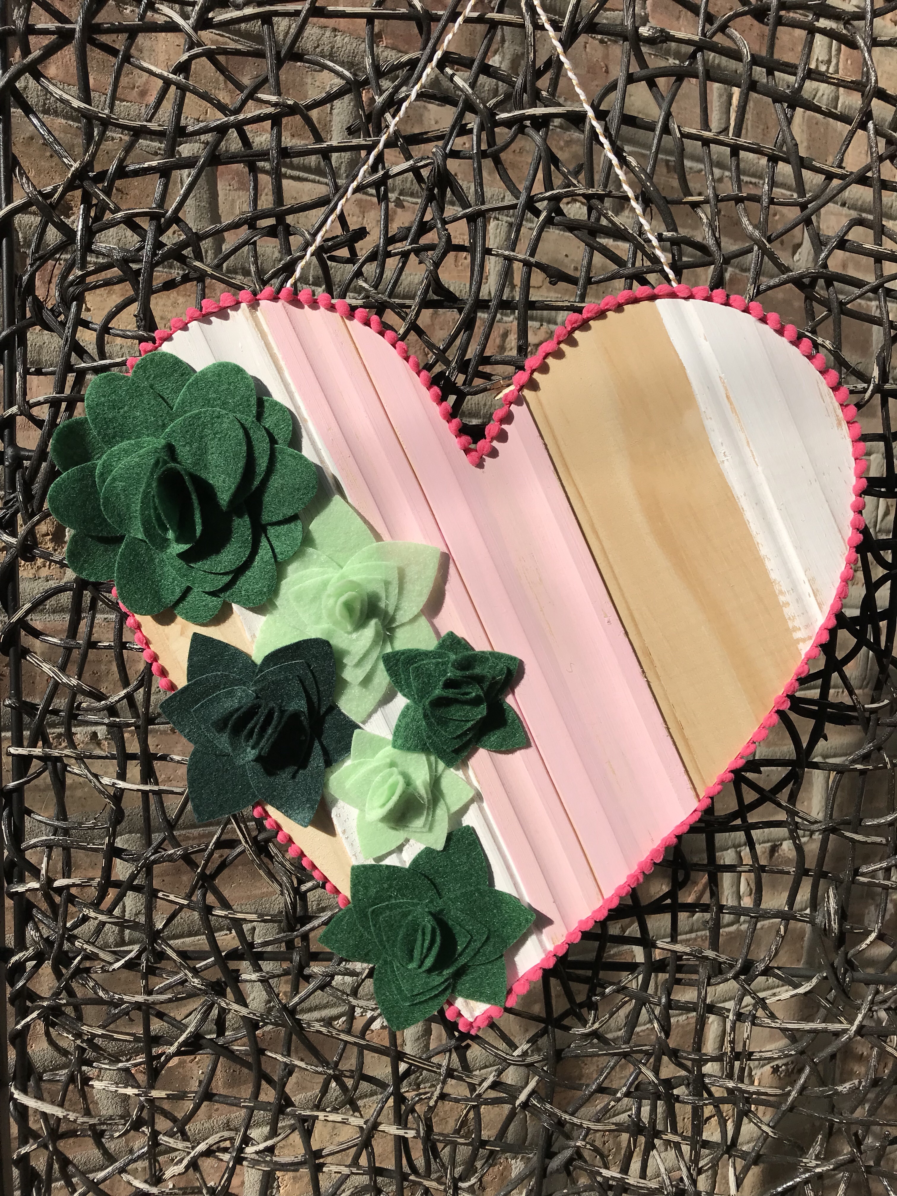 I gathered all of my supplies for this project at Target in the Dollar Spot section. I picked up the painted heart plaque and succulent garland for $3 a piece. The pink pom trim was only $1. I only ended up using one of them for this project. So, the total cost is only $7 + tax!