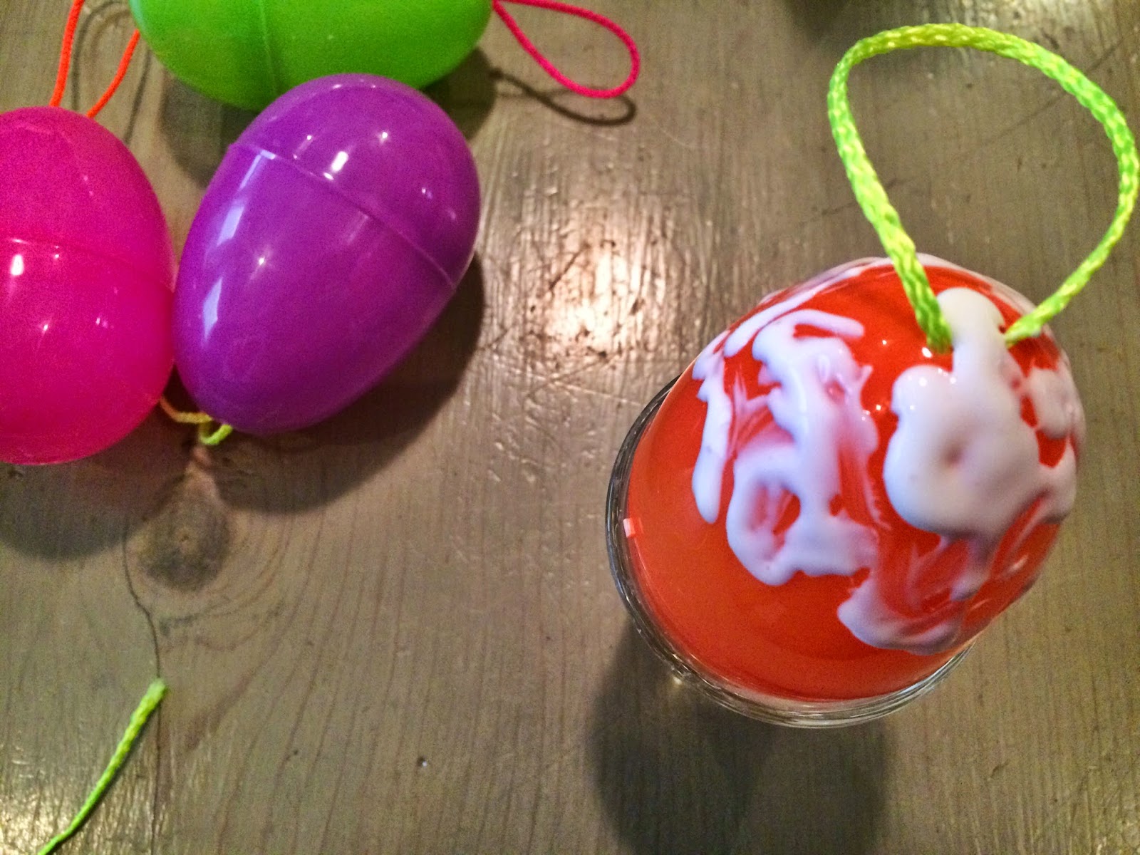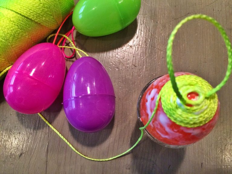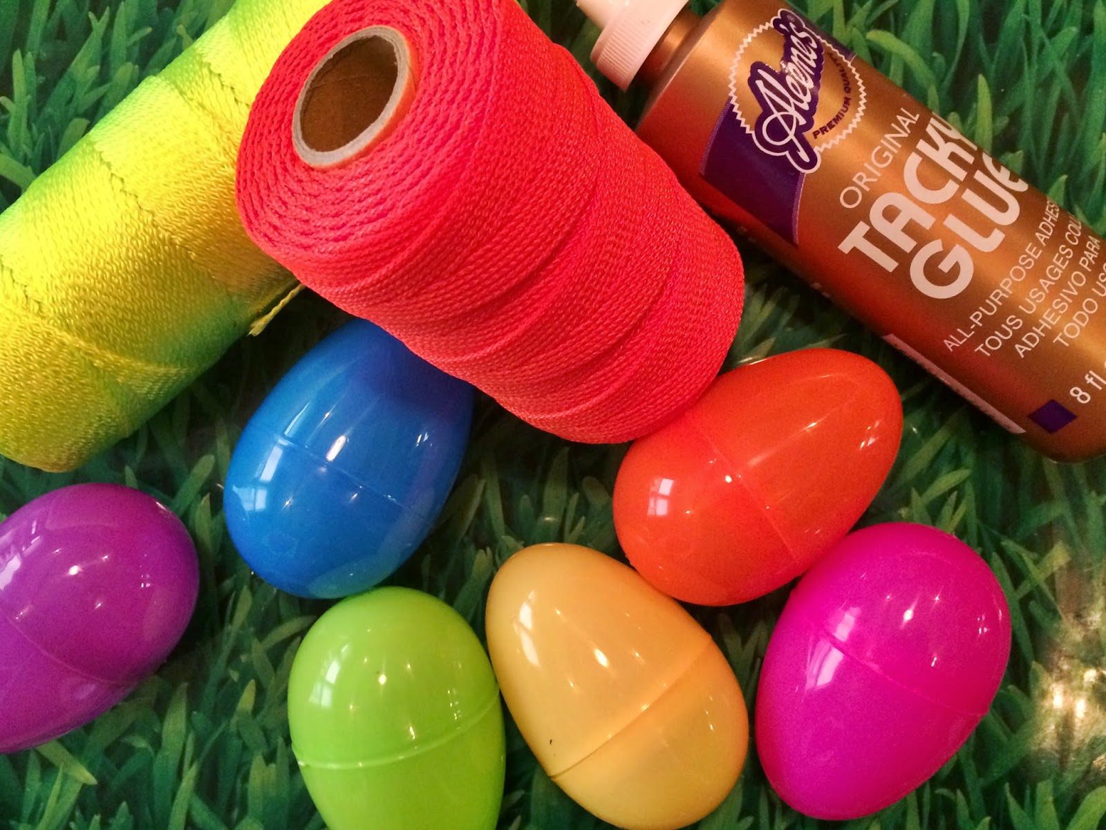 My friend Mintie mentioned to me months ago that she wanted to make yarn wrapped eggs when it was time for Easter crafting. I loved this idea, but wanted to put my own spin (pun intended) on it by using fluorescent mason twine. I know an awesome secret about fluorescent mason twine which I will share at the end of this posting.