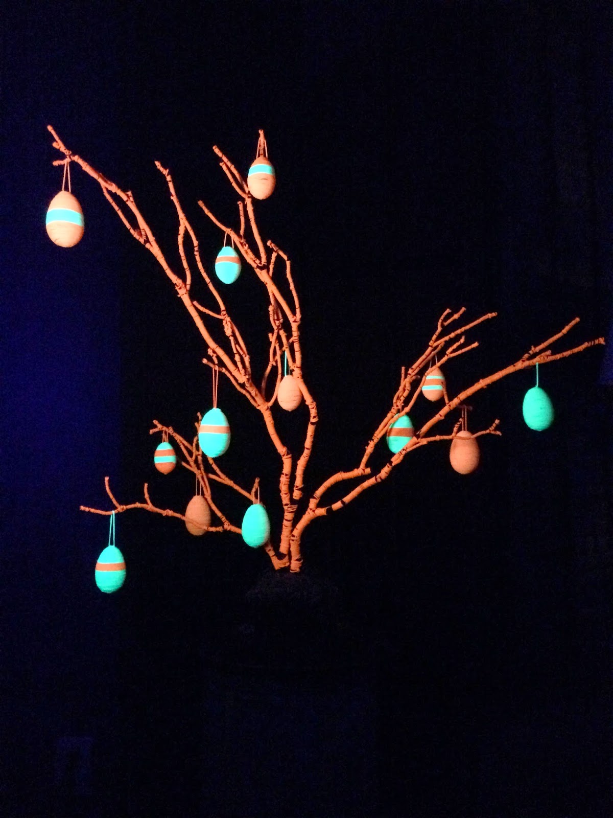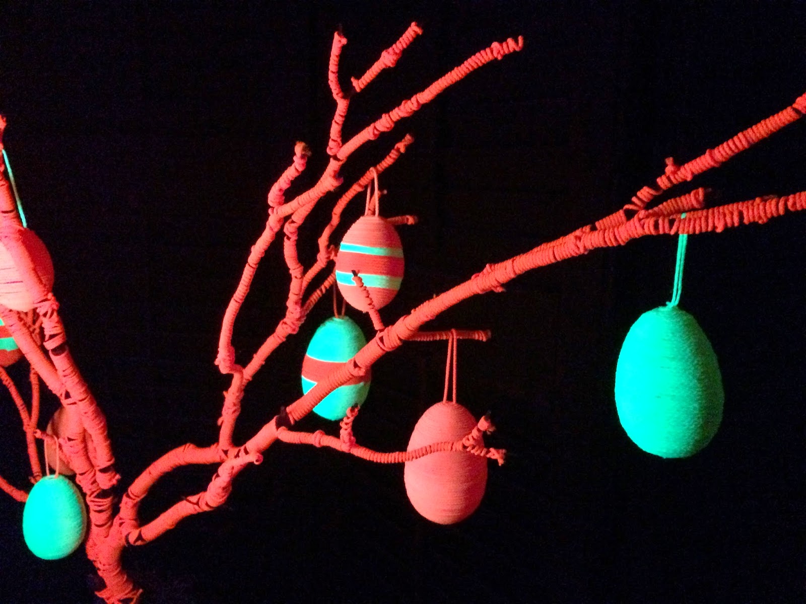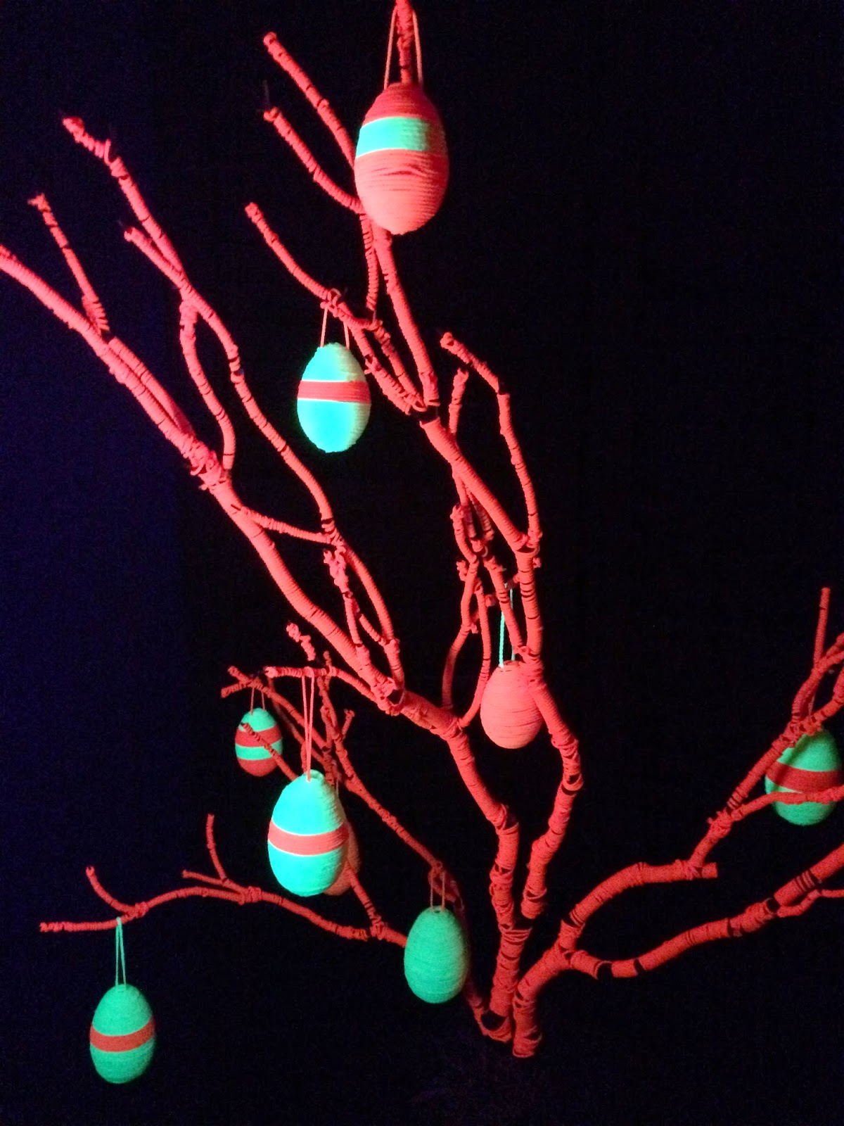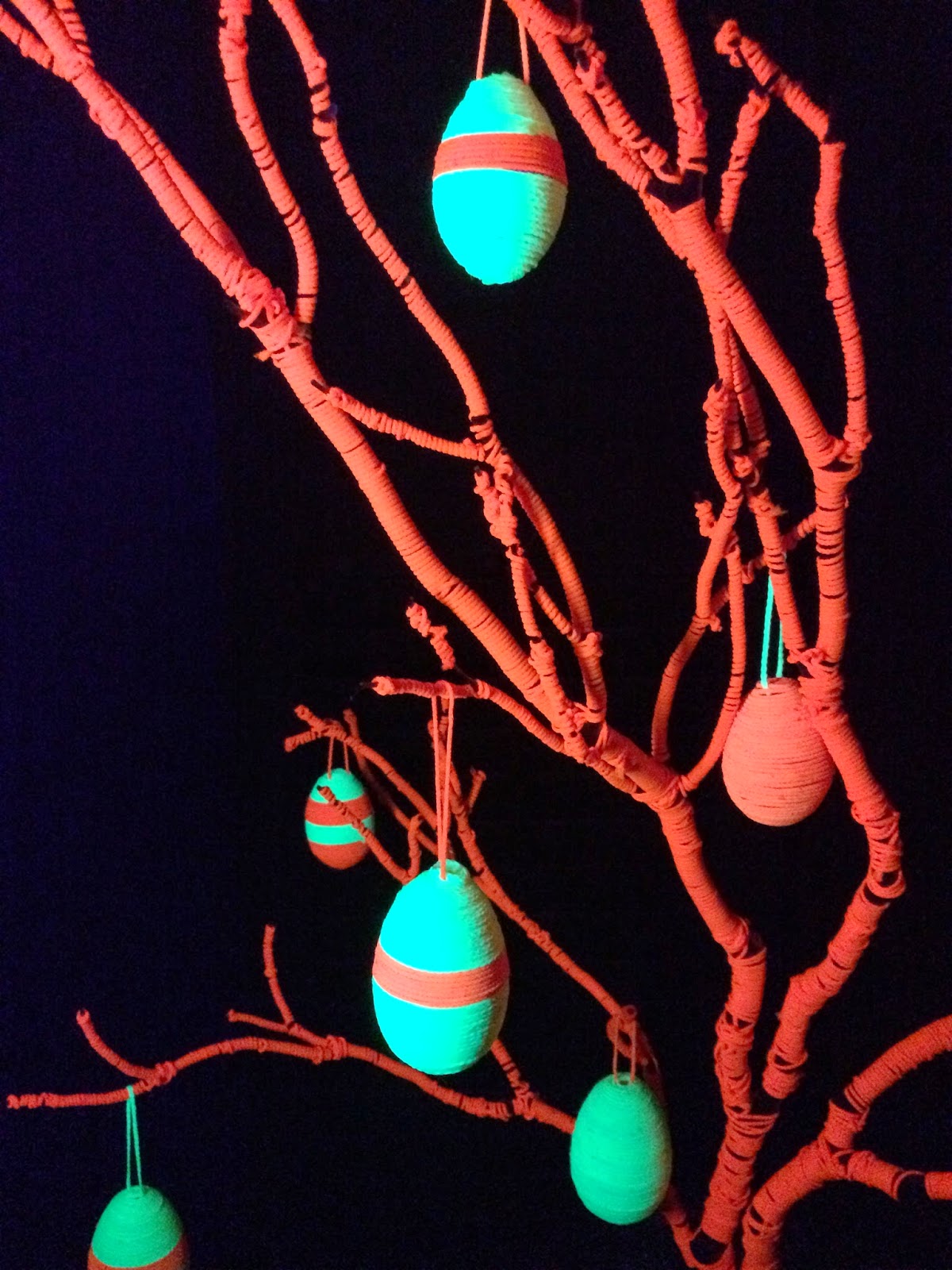 Oh, the best part about using fluorescent mason twine is that it’s black light reactive! This tree just got a whole lot groovier.